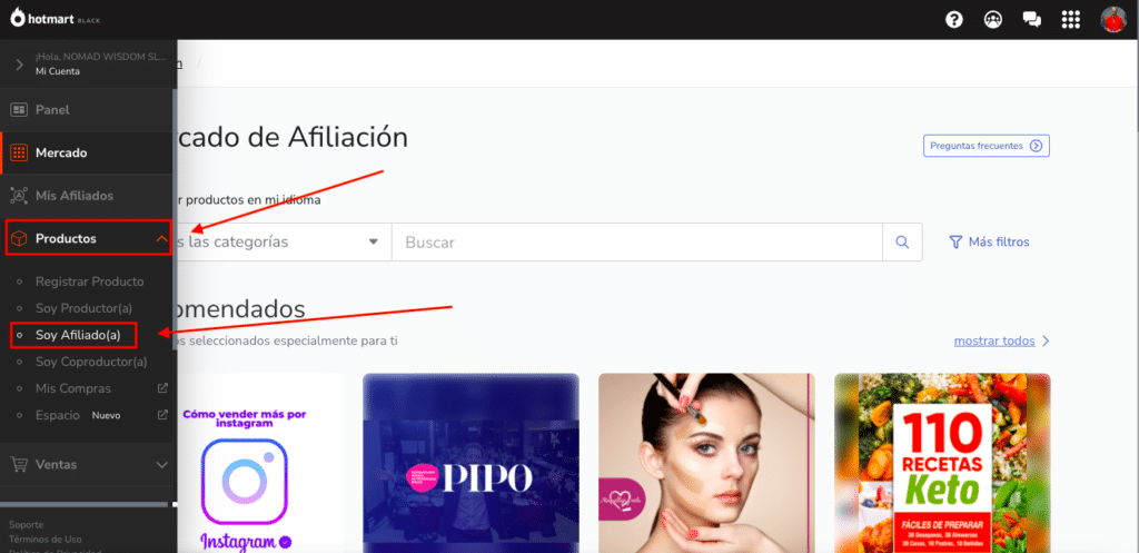 La plataforma que utilizamos para la afiliación a nuestros cursos es Hotmart.